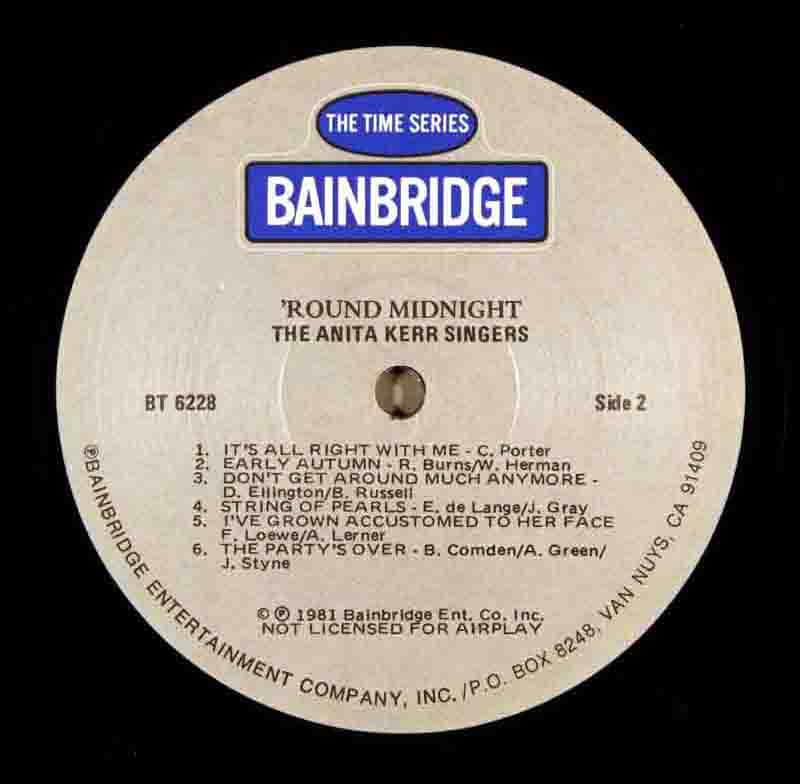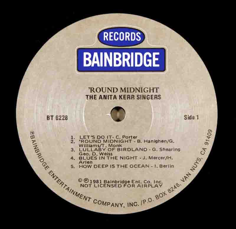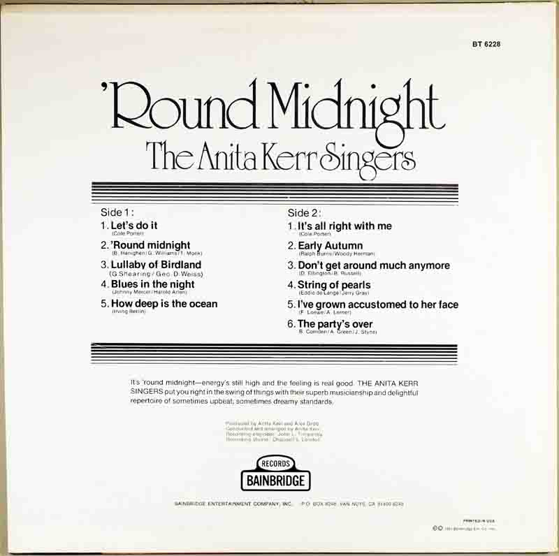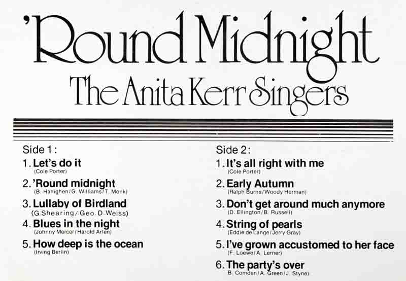 アニタ・カー・シンガーズ(The Anita Kerr Singers)のLPレコード、『ラウンド・ミッドナイト('Round Midnight)』を紹介いたします。