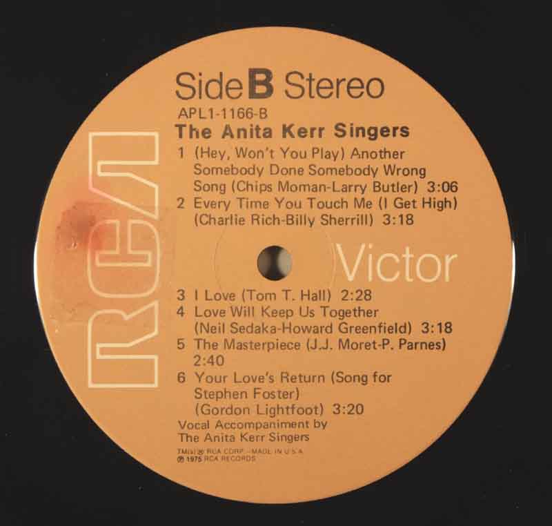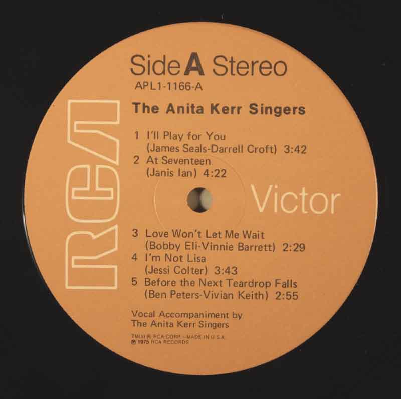 1975年にRCAレコードからリリースされたLPレコード『アニター・カー・シンガーズ(The Anita Kerr Singers)』を紹介します。