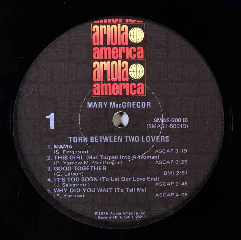1976年リリース、メアリー・マクレガー(Mary Macgregor)のデビュー・アルバム『過ぎし日の想い出(Torn Between Two Lovers)』を紹介します。