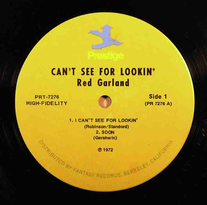 やはり「RVGの部屋」、レッド・ガーランドの『Can't See For Lookin』。71年にファンタジー・レコード(Fantasy Records)に買収された以降のデザイン。黄緑地の上部に青のイカリロゴ。オリジナルなら63年リリース。レーベルを拡大するとわかりますが、72年の再発盤。この頃になるとペラペラの薄盤が主流となり、厚いレコード盤に感じた風格を求めることはできません。
