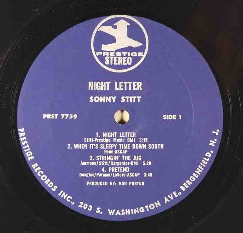 同じく「RVGの部屋」登録、ソニー・スティット (Sonny Stitt)の『ナイト・レター (Night Letter)』。7000番台後半、7500から7857番前後とあり、左の7759は合致します。上部の丸で囲まれたロゴはイカリのマークだそうです。