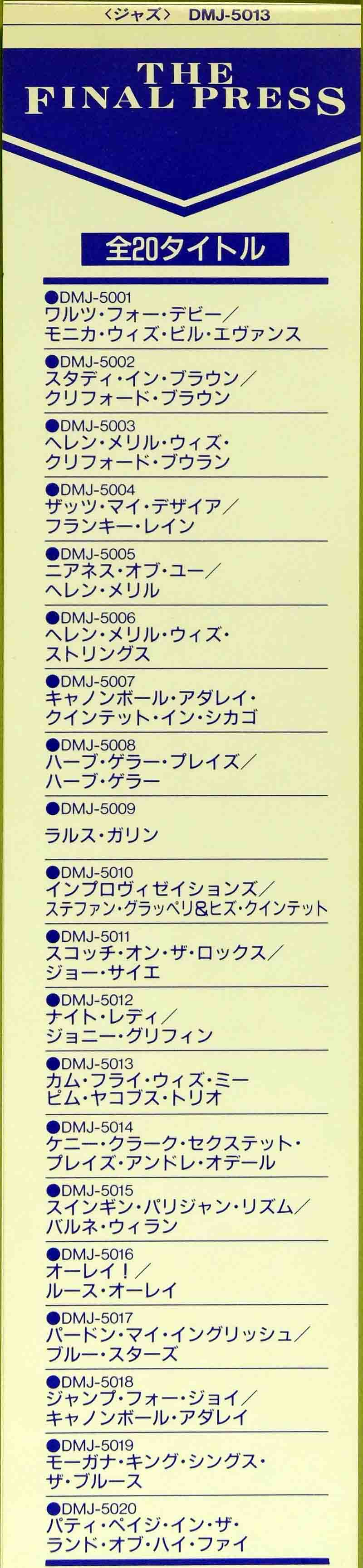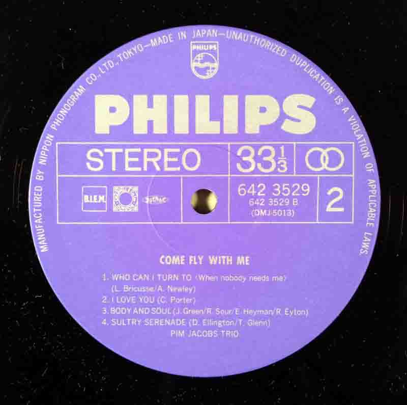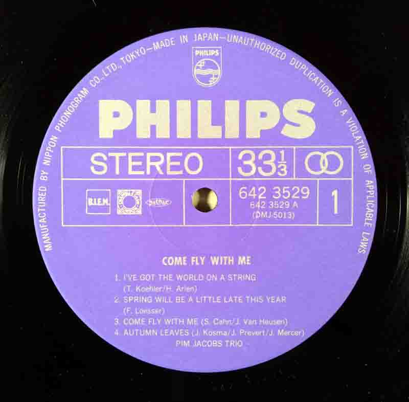 オリジナルは、1982年にオランダのフィリップス(Philips)からリリースされました。本盤は91年に日本フォノグラムから発売されたものです。当時、オリジナルであれば30万円は下らないと聞いたことを覚えています。アルバム・タイトルでもある『(A3) カム・フライ・ウィズ・ミー(Come Fly With Me)』の楽しく清々しい演奏に魅かれ手に入れました。