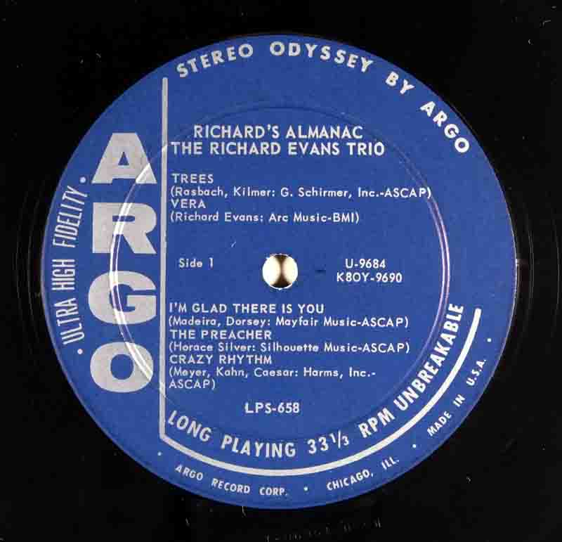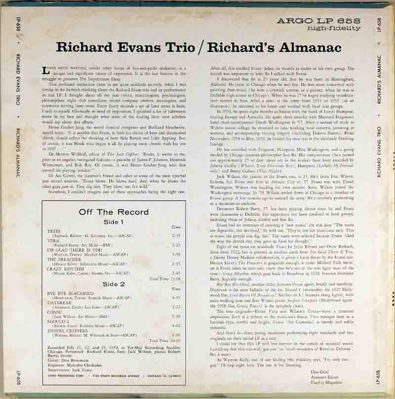 1959年にリリースされた、リチャード・エヴァンス・トリオ(The Richard Evans Trio)の『リチャーズ・アルマナック(Richard's Almanac)』を紹介いたします。