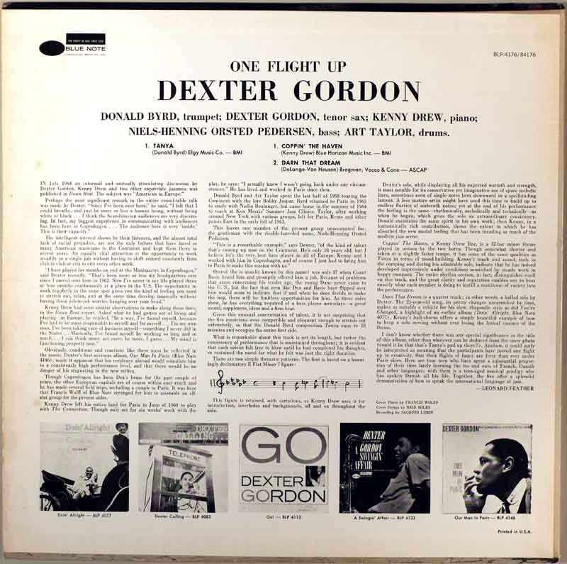 私のなかで、デクスター・ゴードンといえば、何といっても1986年のアメリカ・フランス合作の映画『ラウンド・ミッドナイト(Round Midnight)』での演技と演奏が強烈に印象に残っています。アカデミー賞主演男優賞にノミネートされましたが、惜しくも『ハスラー2』のポール・ニューマンにさわられました。映画はパリが舞台なので、本アルバムの収録も思い出しながらの演技だったのではと考えると、さらに愛着が増してきます。