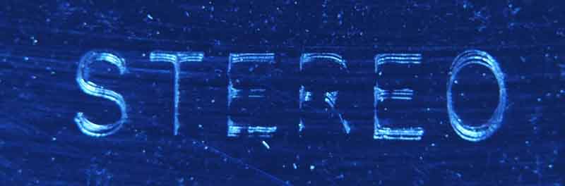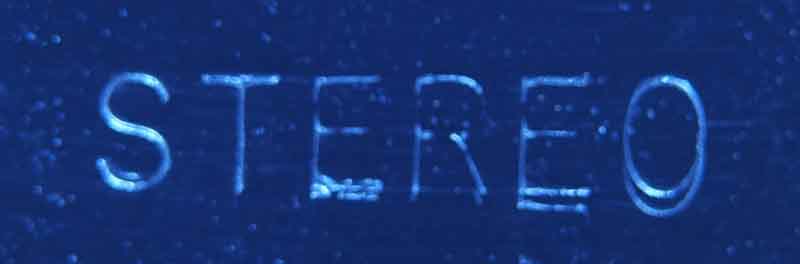 離れたところに「STEREO」の刻印。拡大の関係で大きくなっていますが、文字サイズは「VAN GELDER刻印」と同じです。